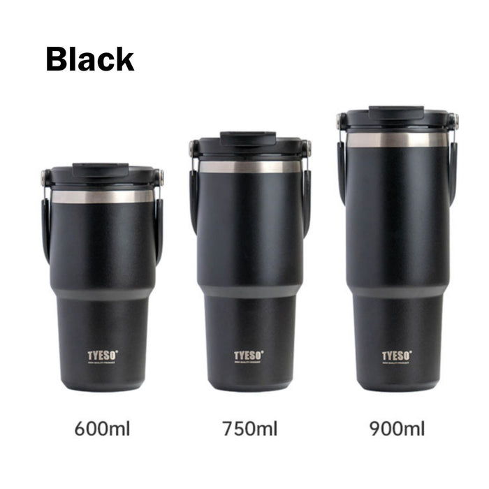 600ML Black Stainless Steel Travel Mug with Leak-proof 2-in-1 Straw and Sip Lid, Vacuum Insulated Coffee Mug for Car, Office, Perfect Gifts, Keeps Liquids Hot or Cold