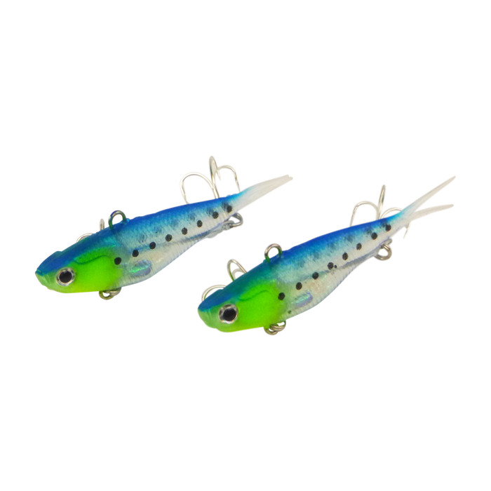 Swimerz Soft Vibes are a traditional fork tail type soft plastic lure. At 95mm long and 20g in weight they can be fished in current, vertically jigged in deep water, cast or slow trolled. They are equipped with 2 x quality nickel plated Size 6, carbon steel, hooks and flattened split rings for greater strength.