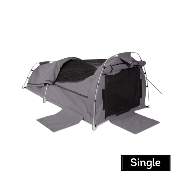 DOME SINGLE/DOUBLE Swag Camping Waterproof Canvas Tent Hiking Mattress Grey - Single