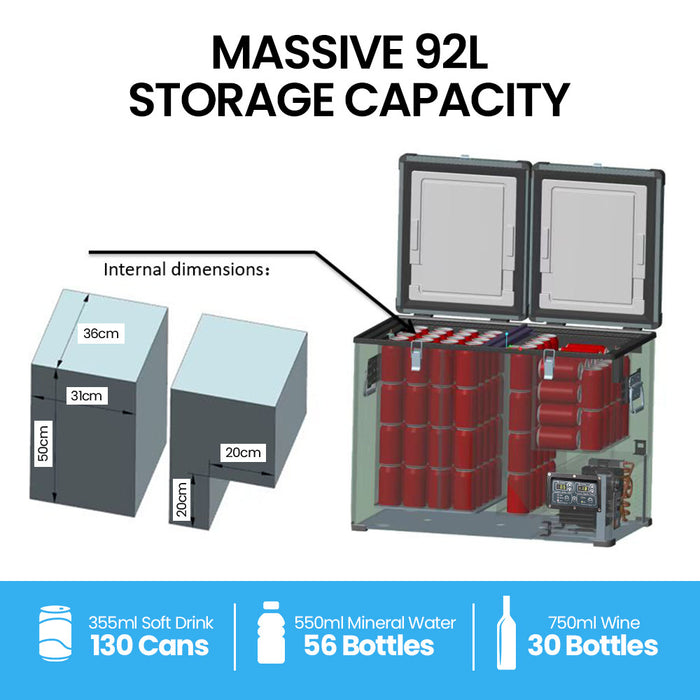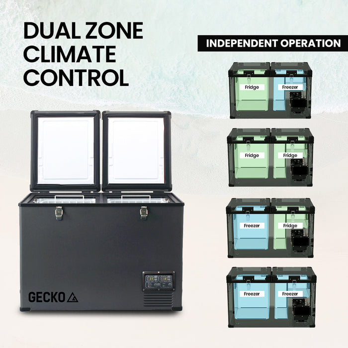 GECKO 92L Dual Zone Portable Fridge / Freezer, SECOP Compressor, for Camping, Car, Caravan