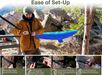 SUPER COMFORTABLE - Whether you're relaxing by the fire or sleeping under the stars, our camping hammock has everything you need to stay comfy and covered throughout the night for your next camping trip, or even just lounging in your backyard.