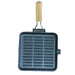 Square cast-iron griddle pan, pre-seasoned and folding handle.