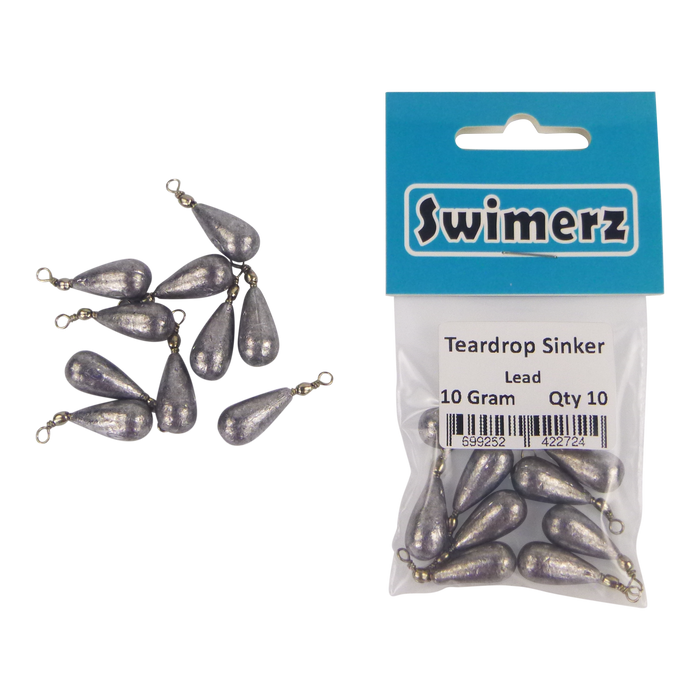 Swimerz 10gm Teardrop Sinker, Lead, 10 pack