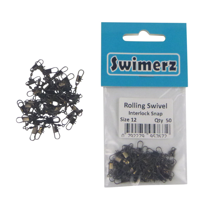 Swimerz Rolling Swivel w Interlock Snap, Size 12, 50 pack