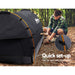 A 14oz 400gsm water-repellent Rip stop canvas cover, 500gsm PVC waterproof flooring and an extra 10cm high edge all round. Swag speak for the ultimate tear-resistant waterproofing. Fully enclosed for privacy with zipped openings for fresh air anytime. Mesh panels to keep insects out. Pre-curved Aluminium poles structure design support to hold up the entire set up.