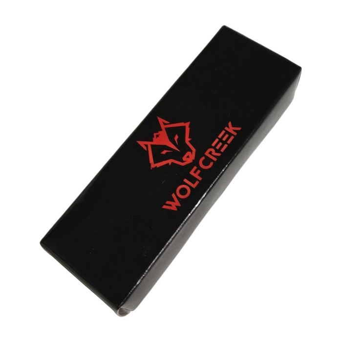 - Metallic red lined handle with Wolf Creek logo